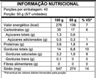 Fécula de mandioca especial para pão de queijo, água, ovo, óleo vegetal de soja, queijos minas, parmesão, composto lácteo, sal, margarina, aroma de queijo e corante urucum.